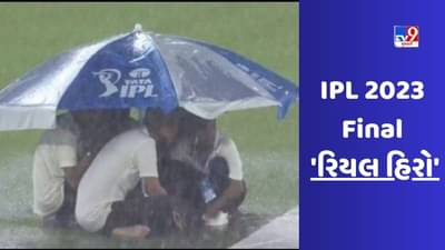 IPL 2023 Final: લગભગ આખી સિઝનમાં આઈપીએલને સાથ આપતા હવામાને ફાઈનલ મેચની મજા બગાડી નાખી. ધોધમાર વરસાદ ખાબકતા ગ્રાઉન્ડમેને જમીનને સૂકવવાનો શ્રેષ્ઠ પ્રયાસ કર્યો હતો, પરંતુ એક છત્રીમાં છ ગ્રાઉન્ડ સ્ટાફનો આ ફોટો એ કહેવા માટે પૂરતો છે કે ગ્રાઉન્ડ રમવા માટે તૈયાર કરવા માટે કેટલા પ્રયત્નો કરવામાં આવ્યા હતા.