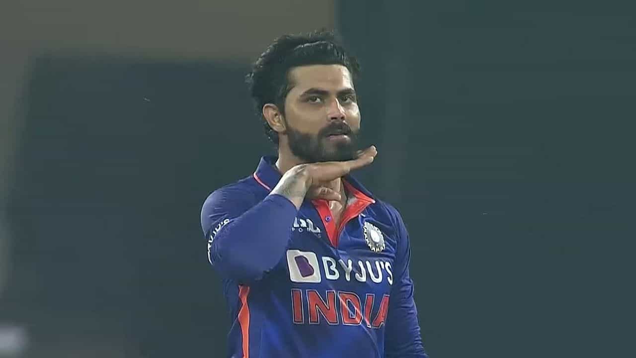 ભારત અને શ્રીલંકા (India Vs Sri Lanka) વચ્ચે લખનૌમાં ટી20 સિરીઝની પ્રથમ મેચ રમાઇ હતી. આ મેચ સાથે ઇજાથી આરામ પર રહેલા ભારત નો સ્ટાર ઓલરાઉન્ડર રવિન્દ્ર જાડેજા (Ravindra Jadeja) પરત ફર્યો હતો. આજે તેને બેટીંગ ઇનીંગમાં બેટ વડે પ્રદર્શનની પૂરતી તક મળી શકી નહોતી, પરંતુ બોલીંગમાં તેણે પૂરો દમ લગાવ્યો હતો. જાડેજાને બેટીંગમાં 4 બોલ રમવાનો મોકો મળ્યો હતો અને જેમાં તેણે 3 રન બનાવ્યા હતા. જોકે બોલીંગ વડે તેણે એક વિકેટ ઝડપી હતી. જોકે બોલીંગ વડે તેણે એક વિકેટ ઝડપી હતી. મહત્વની વિકેટ બાદ તુરત જ તેણે અલ્લૂ અર્જૂને (Allu Arjul) પુષ્પા ફિલ્મમાં ડાયલોગ સાથેના અંદાજ માં જશ્ન મનાવ્યો હતો.