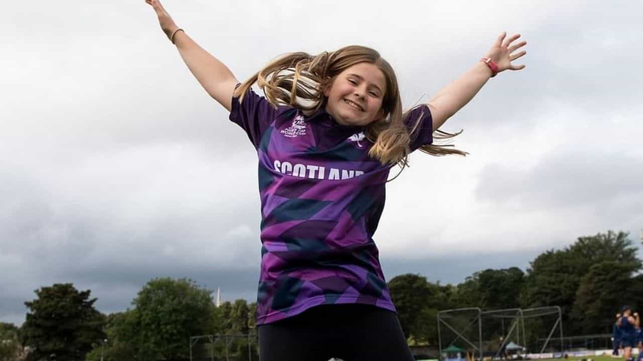 સ્કોટલેન્ડ ક્રિકેટે એક તસવીર શેર કરી છે. જેમાં રેબેકા ટીમની જર્સી પહેરેલી જોવા મળી રહી છે અને ટીવીની પાછળ સ્કોટલેન્ડની મેચ ચાલી રહી છે. તેણે કેપ્શનમાં લખ્યું, 'સ્કોટલેન્ડના કિટ ડિઝાઇનર. 12 વર્ષની રેબેકા ડાઉની હેડિંગ્ટનની રહેવાસી છે જે ટીવી પર પહેલી ગેમ જોઈ રહી હતી. આભાર રેબેકા.
