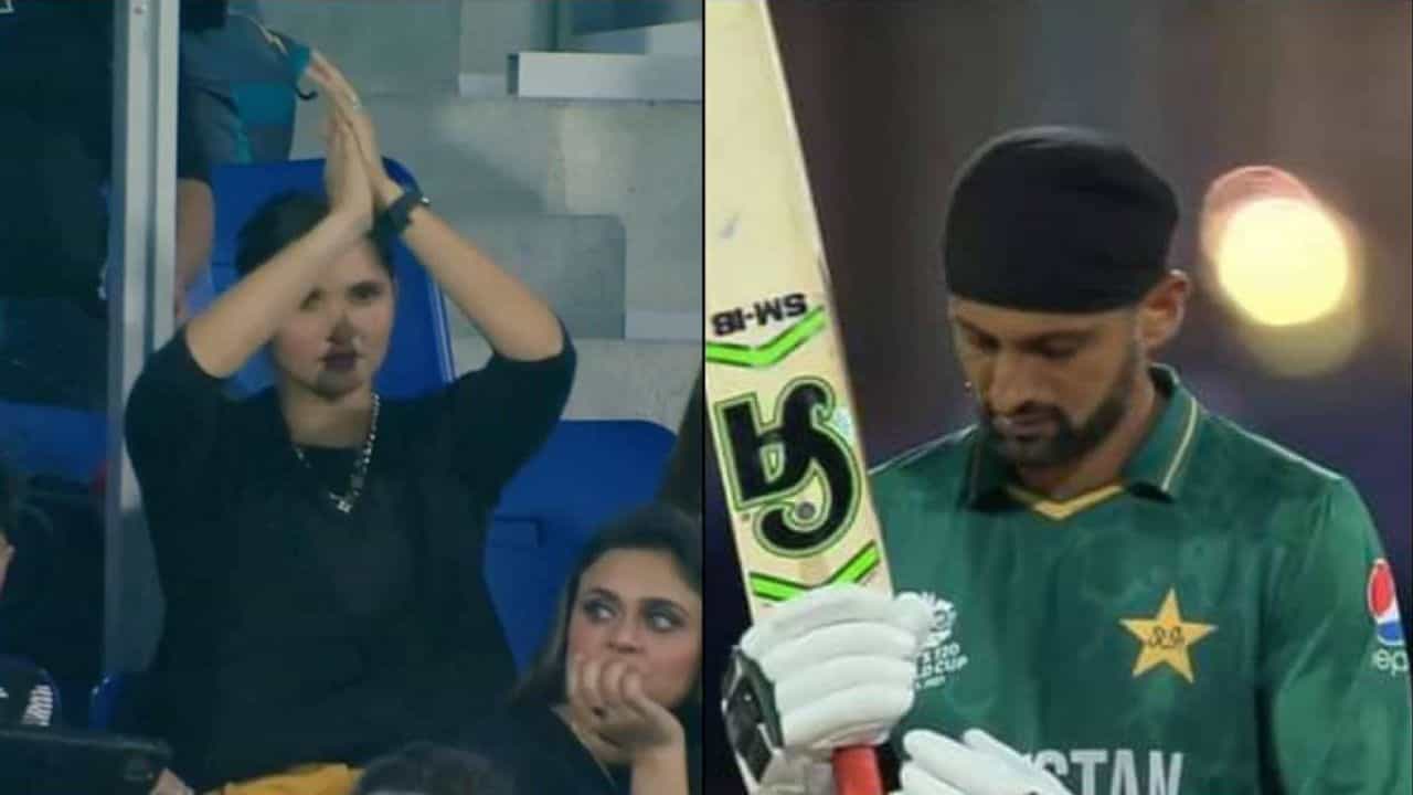 પાકિસ્તાન અને ઓસ્ટ્રેલિયા (Pakistan vs Australia) વચ્ચે દુબઇમાં રમાયેલી ટી20 વિશ્વકપ 2021 (T20 World Cup 2021) સેમિફાઇનલ મેચ દરમ્યાન સાનિયા મિર્ઝા (Sania Mirza) જોવા મળી હતી. પતિ શોએબ મલિકને સેમિફાઇનલમાં રમતો જોવા અને તેને ચિયર કરવા માટે ભારતીય ટેનિસ સ્ટાર સ્ટેડિયમ પહોંચી હતી. શોએબ મલિક (Shoaib Malik) મેચ દરમ્યાન ગોલ્ડન ડક વિકેટ ગુમાવી બેઠો હતો. જ્યારે પાકિસ્તાન પણ ઓસ્ટ્રેલિયા સામે હારી ગયુ હતુ. આમ ઓસ્ટ્રેલિયાએ ફાઇનલની ટિકિટ કાપી લીધી હતી, જ્યારે પાકિસ્તાન વિશ્વકપમાંથી બહાર ફેંકાઇ ગયુ હતુ.