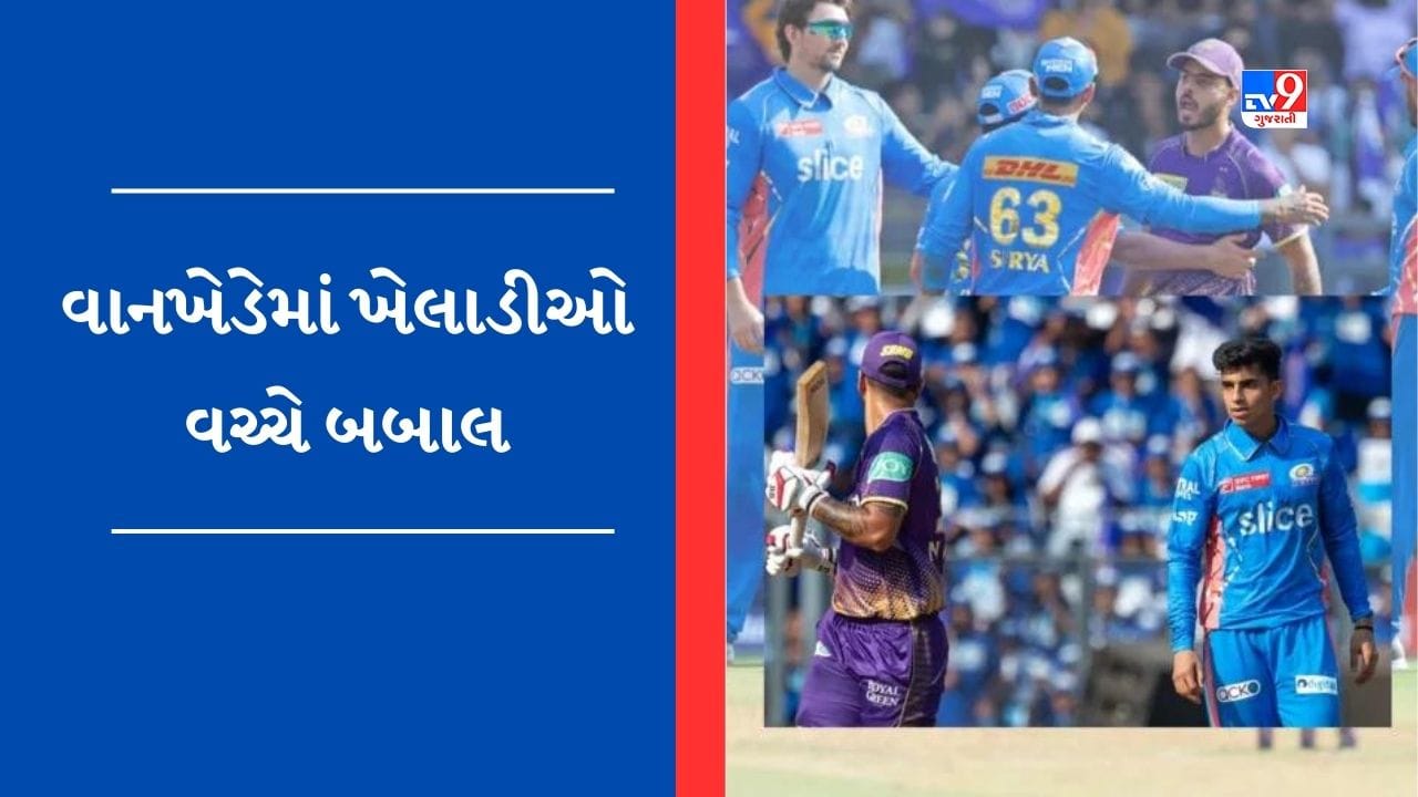 9મી ઓવરમાં હૃતિક શોકીન કોલકત્તાના કેપ્ટન રાણાને 5 રન પર કેચ આઉટ થયો હતો. આ દરમિયાન બંને ખેલાડીઓ વચ્ચે કોઈ વાતને લઈને બોલાચાલી થઈ હતી. કેપ્ટન રાણા ગાળાગાળી કરતો પણ જોવા મળ્યો હતો. ચાવલા અને કેપ્ટન સૂર્યકુમાર બંનેની વચ્ચે આવીને બબાલ શાંત કરાવતા જોવા મળ્યા હતા. આ ઘટનાનો વીડિયો હાલમાં સોશિયલ મીડિયા પર વાયરલ થઈ રહ્યો છે.
