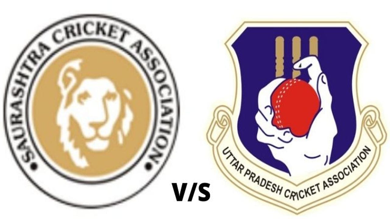 પહેલા દાવ લેતા સૌરાષ્ટ્ર ક્રિકેટ ટીમે 223 રનનુ આસાન લક્ષ્યાંક હરિફ ઉત્તર પ્રદેશની ટીમને આપ્યો હતો. સૌરાષ્ટ્રે 1 રન પર પ્રથમ અને 10 રનના સ્કોર પર બીજી વિકેટ ગુમાવી દીધી હતી. સ્નેલ પટેલ (0) અને શેલ્ડન જેક્સન (0) ઝડપ થી વિકેટ ગુમાવી દેતા મુશ્કેલી વધી ગઇ હતી. ત્યાર બાદ પ્રેરક માંકડ (7) અને અર્પિત વસાવડા (8) પણ કંઇ ખાસ કરી શક્યા નહોતા. પરિણામે 45 ના સ્કોર પર 4 વિકેટ ગુમાવી દીધી હતી. જોકે ત્યાર બાદ દેસાઇ (52) અને સમર્થ વ્યાસે (33) ટીમને મુશ્કેલ સ્થિતીમાંથી ઉગારી હતી.