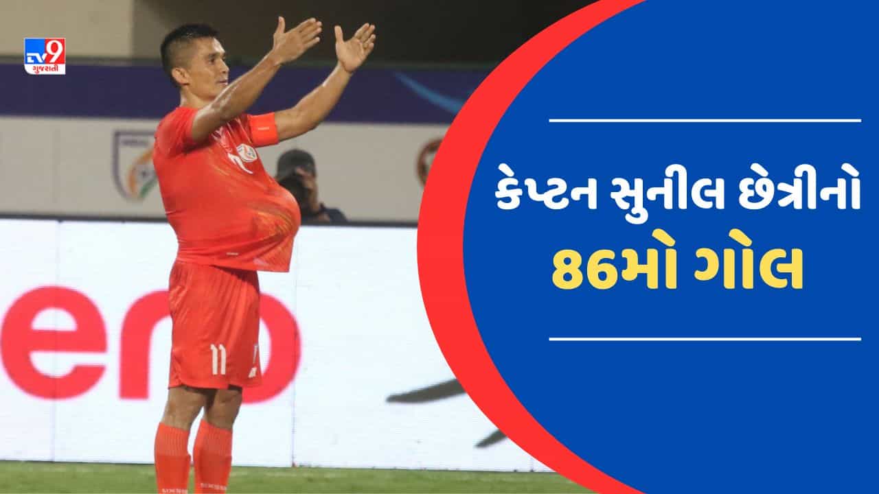 ભારતીય કેપ્ટન સુનિલ છેત્રી એ 38 વર્ષની ઉંમરમાં પોતાના કરિયરનો 86મો ઈન્ટરનેશનલ ગોલ ફટકાર્યો છે. તે 136મી ઈન્ટરનેશનલ મેચ રમી રહ્યો હતો. 20 વર્ષનીન ઉંમરમાં તેણે પોતાનો પહેલો ગોલ પાકિસ્તાન સામે કર્યો હતો.