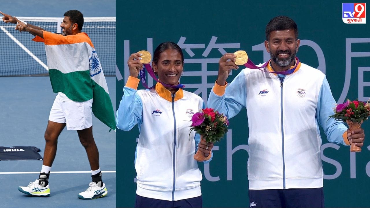 ભારતીય શૂટરોએ ચીનમાં ચાલી રહેલી એશિયન ગેમ્સ 2023 (Asian Games 2023)માં મેડલ જીતવાનું લક્ષ્ય રાખ્યું હતું. હવે ભારતે ટેનિસમાં પણ ગોલ્ડ મેડલ જીત્યો છે. રોહન બોપન્ના (Rohan Bopanna) અને રૂતુજા ભોસલેની ભારતની જોડીએ શનિવારે ફાઈનલમાં ચાઈનીઝ તાઈપેઈની જોડીને હરાવીને મિક્સ ડબલ્સમાં ગોલ્ડ મેડલ (Gold) જીત્યો હતો.