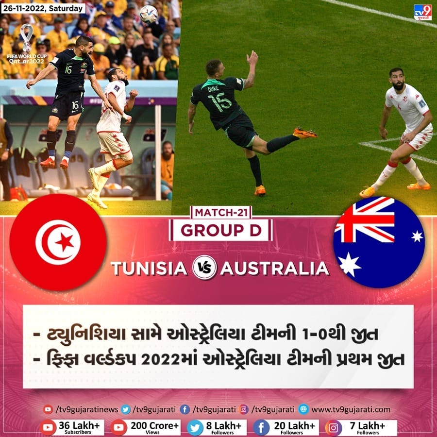 Tunisia Vs Australia : ટ્યુનિશિયા સામે ઓસ્ટ્રેલિયા ટીમની 1-0થી જીત