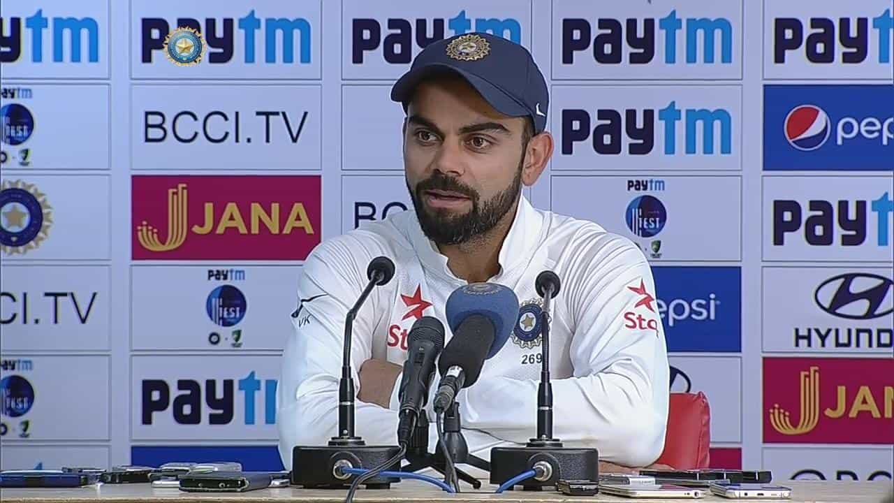 વિરાટ કોહલીએ વર્લ્ડ કપ માટે ટીમ સાથે ઈંગ્લેન્ડ રવાના થતા પહેલાં જ પત્રકારો સાથે પ્રેસ કોન્ફરન્સ કરી. જેમાં તેમણે કહ્યું કે ઈંગ્લેન્ડની પરિસ્થિતિને સહન કરવા કરતાં સૌથી મોટો મુદ્દો છે વર્લ્ડ કપના દબાણને સહન કરવાનો છે.