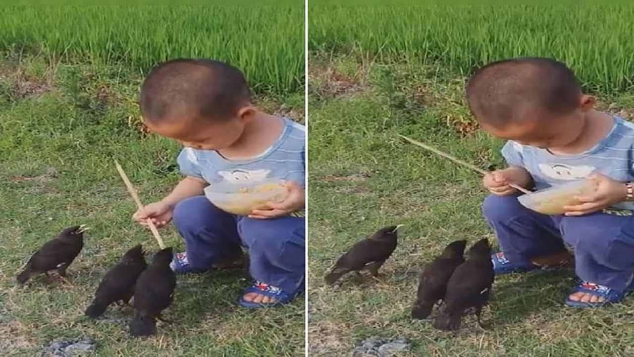 Viral Video: પક્ષીઓેને દાણા ખવડાતા બાળકે જીત્યું બધાનું દિલ, લોકોએ કહ્યું ‘બાળકો ભગવાનનું બીજુ રૂપ’