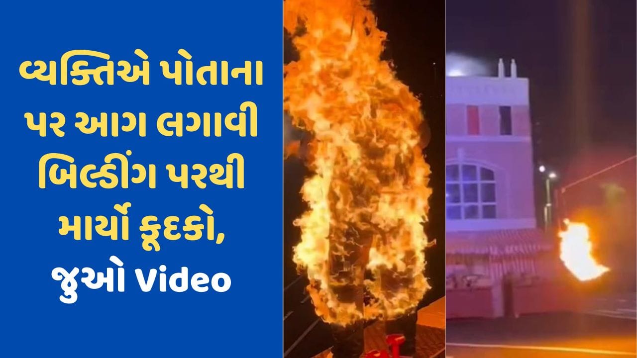 Viral Video: વ્યક્તિએ પોતાના શરીર પર આગ લગાવીને મોટી બિલ્ડીંગ પરથી માર્યો કુદકો, Video જોઈને શ્વાસ થંભી જશે
