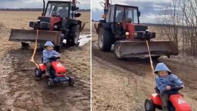 આ વીડિયોમાં બાળક તેના રમકડાના ટ્રેક્ટરમાંથી એક મોટો જેસીબી ખેંચતો જોવા મળી રહ્યો છે, જેનાથી તેનો આત્મવિશ્વાસ વધી રહ્યો છે. વીડિયોમાં તમે જોઈ શકો છો કે કેવી રીતે બાળક તેના રમકડાના ટ્રેક્ટરમાં પાછળથી જેસીબીને દોરડાથી બાંધીને ખેંચી રહ્યો છે.
