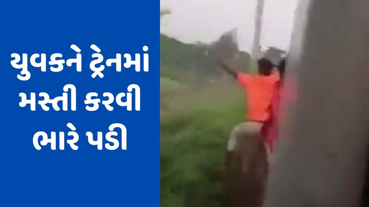 વીડિયોમાં બતાવવામાં આવ્યું છે કે એક સ્પીડિંગ ટ્રેનના દરવાજે ઉભેલો એક યુવક જ્યારે બહારના પોલને અડવાનો પ્રયાસ કરે છે ત્યારે તે અકસ્માતનો શિકાર બને છે.