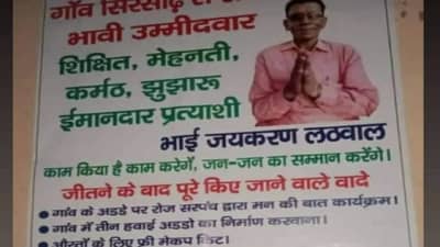 વાસ્તવમાં, સોશિયલ મીડિયા પર વાયરલ થઈ રહેલા પોસ્ટર મુજબ, સિરસાદ ગામના સરપંચ પદના ભાવિ ઉમેદવાર ભાઈ જયકરણ લથવાલે ચૂંટણી જીત્યા પછી પુરા કરવાના વચનોની લાંબી યાદી શેર કરી છે, જેમાં કુલ 13 વચનો આપવામાં આવ્યા હતા.અને લગભગ આ તમામ વચનો માત્ર હવામાં જ હોય તેવું લાગે છે.