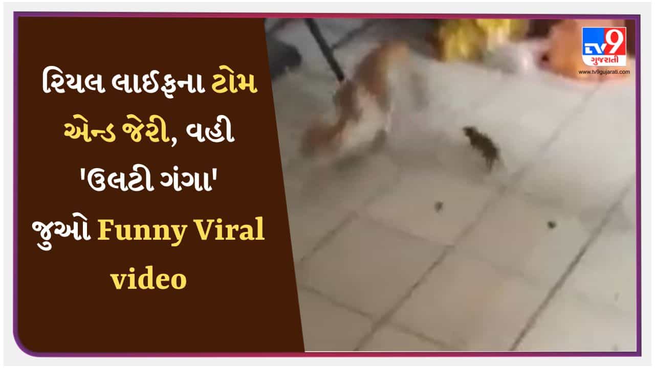 સામાન્ય રીતે લોકો બિલાડીઓને પોતાના ઘરમાં રાખે છે. જેથી તેમનું ઘર ઉંદરોથી સુરક્ષિત રહે, પરંતુ એવું જરૂરી નથી કે દરેક ઉંદર, બિલાડી ડરી જાય. કેટલીકવાર બિલાડીની યુક્તિ તેના પર બેકફાયર કરે છે. આવું જ કંઈક આ વીડિયોમાં જોવા મળ્યું, જેમાં એક બિલાડી ઉંદરને ડરનો ડોઝ આપી રહી હતી, પરંતુ તેની બધી યુક્તિઓ પલટાઈ ગઈ અને ઉંદર ગુસ્સે થઈ ગયો અને બિલાડીને ઊંધી દોડાવી દીધી. ત્યારે એક અજીબોગરીબ નજારો જોવા મળ્યો જે જોઈને તમે હસવા મજબૂર થઈ જશો.