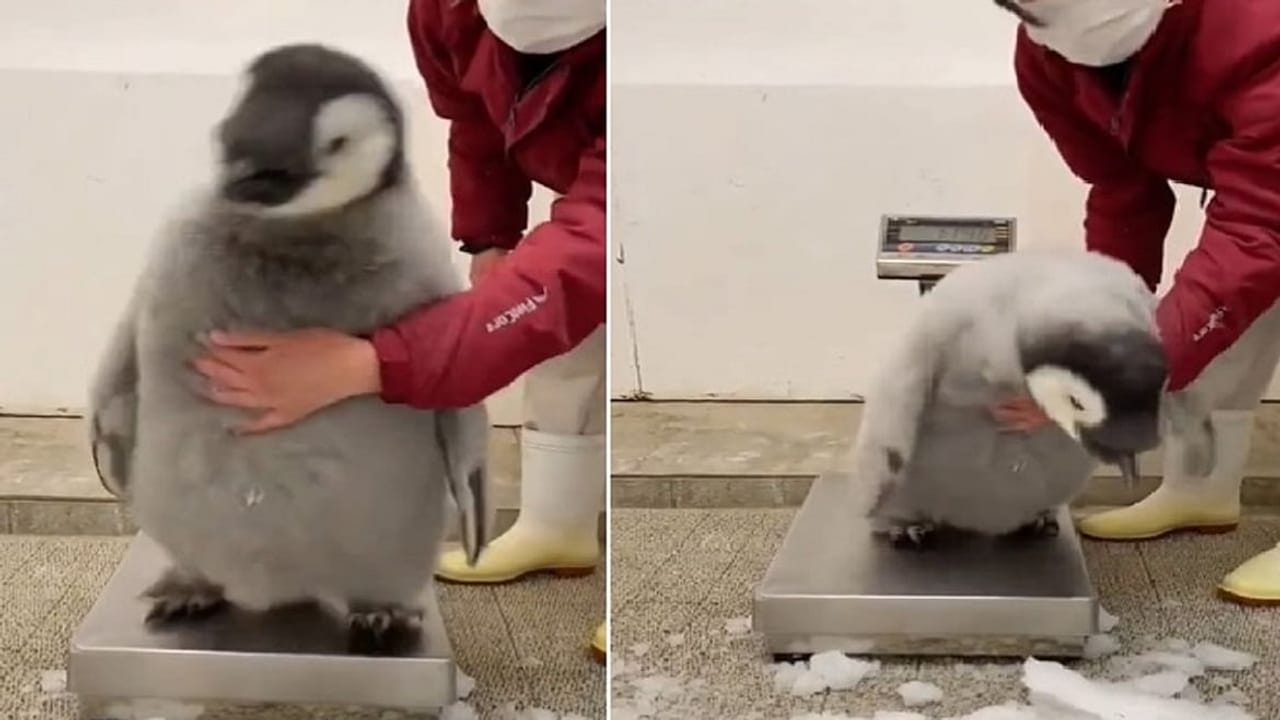 પેન્ગ્વિનનું વજન માપવામાં શખ્સનો છૂટી ગયો પરસેવો, Viral વીડિયો જોઈ લોકો હસીહસીને થયા લોટપોટ