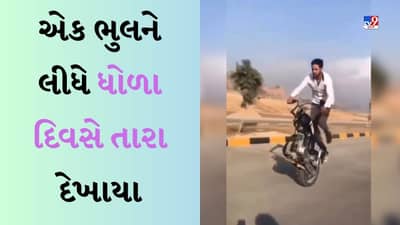 વીડિયોમાં તમે જોઈ શકો છો કે ખાલી રોડ પર એક વ્યક્તિ વિચિત્ર બાઇક સાથે સ્ટંટ કરી રહ્યો છે. તે બાઇકનું હેન્ડલ પકડીને ટાયર પર બેલેન્સ કરીને સ્ટંટ કરે છે. આ દરમિયાન બાઇકની સ્પીડ પણ ઓછી થતી નથી. તે પોતાનો સ્ટંટ કરવાનું ચાલુ રાખે છે, પરંતુ આ દરમિયાન તેનું સંતુલન બગડી જાય છે અને તે ચાલતી બાઇક પરથી જમીન પર પડી જાય છે.