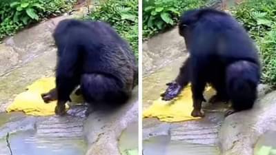 પ્રાણીઓમાં ચિમ્પાન્ઝીને એક સમજદાર પ્રાણી માનવામાં આવે છે.પરંતુ શું તમે ક્યારેય કોઈ ચિમ્પાન્ઝીને માણસની જેમ કપડા ધોતા જોયા છે.તાજેતરમાં વાયરલ થઈ રહેલા એક વીડિયોમાં (Viral video) આવુ જ જોવા મળે છે.વીડિયોમાં જોઈ શકાય છે કે,તે કપડા પર સાબુ લગાવે છે અને બાદમાં તે કપડાને ઘસી ઘસીને સાફ કરતો જોવા મળી રહ્યો છે.વાંદરાને આ રીતે કપડા ધોતા જોઈને મહિલાઓને પણ આશ્વર્ય થઈ રહ્યુ છે.