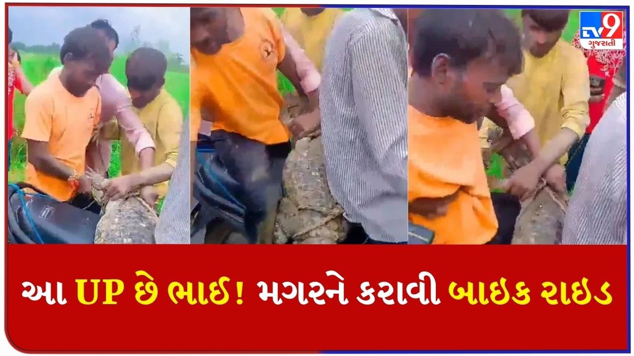 મામલો ઉત્તર પ્રદેશના એટાહ જિલ્લાનો છે. ખરેખર, આ જિલ્લાના ઘણા ગામડાઓ પણ પૂરની ઝપેટમાં છે. આવી સ્થિતિમાં એક મગર પાણીમાં તરતો ગામમાં પહોંચ્યો, પરંતુ તે મગરને કેવી રીતે ખબર પડી કે યુપીના લોકો તેના કરતા વધુ ખતરનાક છે. જ્યારે લોકો સામાન્ય રીતે મગરને જોઈને ભાગી જાય છે, ત્યારે ગામના કેટલાક છોકરાઓએ કોઈ પણ ડર વિના મગરને પકડી લીધો અને તેનું મોં બાંધી દીધું. જેથી તે કોઈને નુકસાન ન પહોંચાડે. પછી બે છોકરાઓએ મગરને બાઇક પર બેસાડ્યો અને તેને પાછો નદીમાં છોડવા નીકળ્યા.