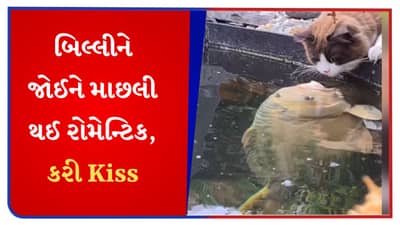 Fish Kisses Cat Video : ઈન્ટરનેટ પર ‘ક્યારે શું’ મજાની વાતો વાઈરલ થઈ જાય તેનું કંઈ કહી શકાય નહીં. આમાંથી કેટલાક વીડિયો એવા છે કે લોકોને પોતાની આંખો પર વિશ્વાસ કરવો મુશ્કેલ થઈ જાય છે. હાલમાં સોશિયલ મીડિયા પર આવા જ એક વીડિયોએ લોકોનું ધ્યાન ખેંચ્યું છે. આમાં એક માછલી બિલાડીને કિસ કરતી જોવા મળે છે. હા, તમે બિલકુલ સાચું વાંચ્યું છે. વાયરલ ક્લિપમાં માછલી બિલાડી સાથે રોમાંસ કરતી જોઈ શકાય છે.
