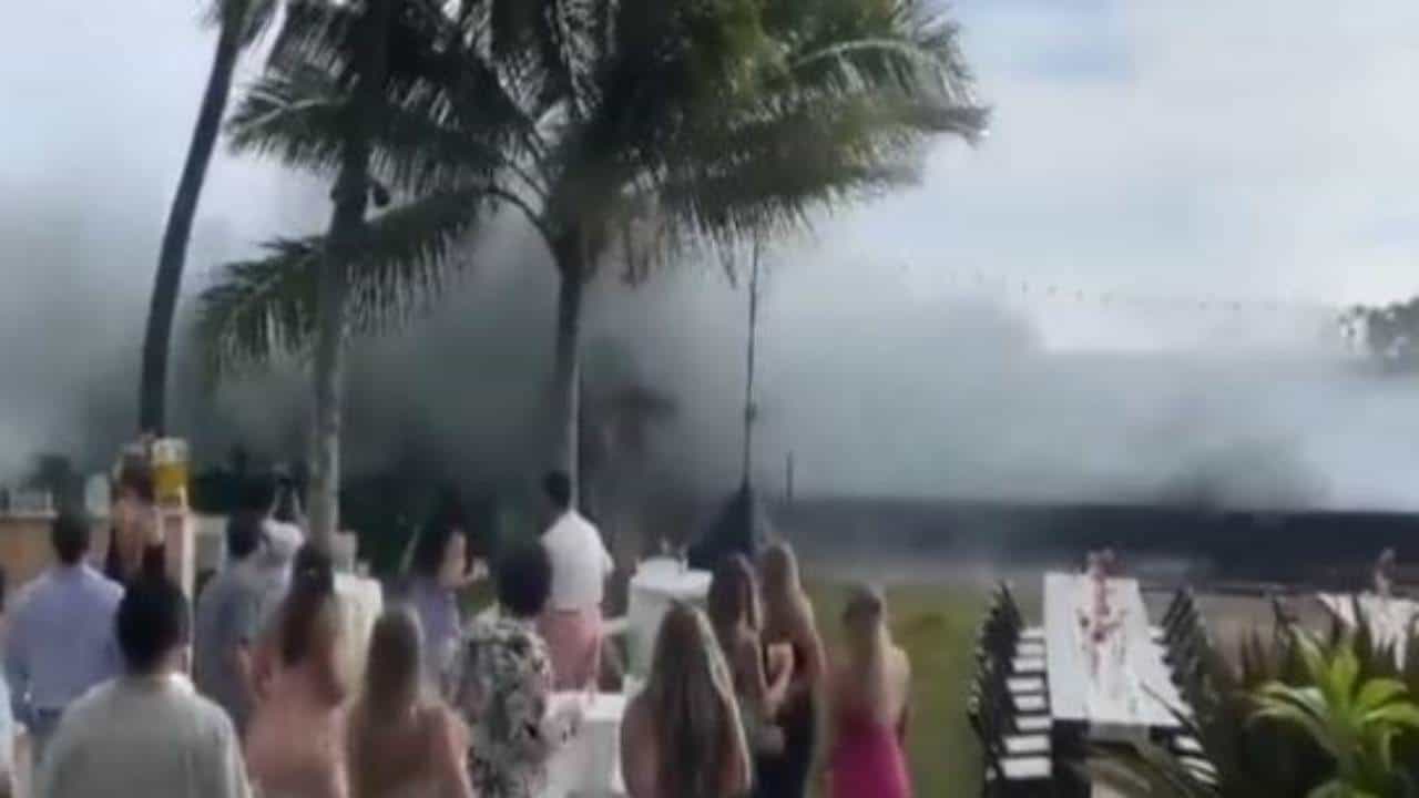 VIDEO: 🇺🇸 Massive waves crash into an outdoor wedding reception in Kailua-Kona, on #Hawaii‘s Big Island, during a tropical storm on July 16 pic.twitter.com/jM6dhMuA7s