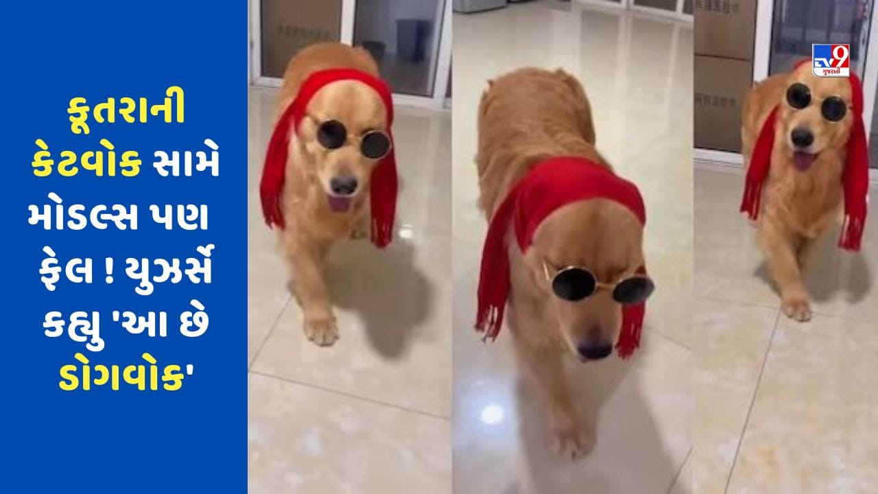 તમે અત્યાર સુધી કૂતરાઓના ઘણા રૂપ જોયા જ હશે, તેમની પ્રામાણિકતા, સમજણ અને તેમના માલિક પ્રત્યેની નિષ્ઠાથી તેઓ ચોક્કસપણે લોકોને તેમના ચાહક બનાવે છે. પરંતુ આ વખતે ડોગીએ જે ચાલ બતાવી છે તે જોઈ તમે પણ દંગ રહી જશો. એક કૂતરાએ એવી ફની સ્ટાઈલ અને ગજબ ચાલ બતાવી કે દર્શકો કહેવા લાગ્યા મોટા મોડલ તેની સામે ફેલ છે. હકીકતમાં, એક કૂતરો મોડલની જેમ કેટવોક કરતો જોવા મળ્યો, લોકો તેને વારંવાર જોઈ રહ્યા છે.