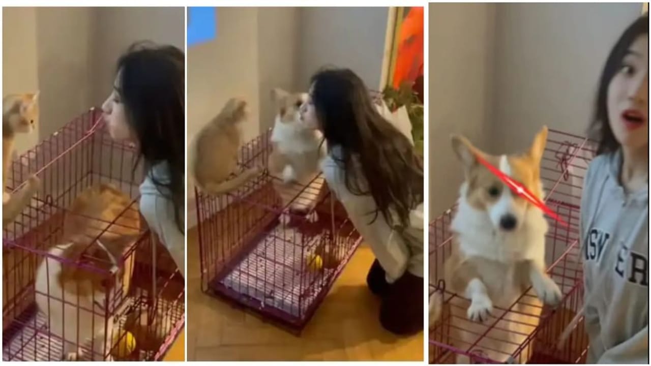 Viral Video : બિલાડીને કિસ કરવા માંગતી હતી મહિલા, અચાનક શ્વાને આવીને કર્યુ એવું કે વીડિયો જોઇ તમારો દિવસ બની જશે