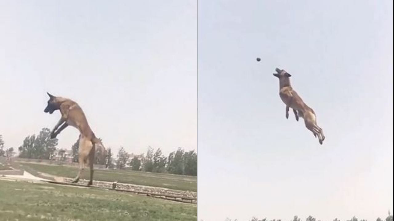 શ્વાનને યોગ્ય રીતે તાલીમ આપવામાં આવે તો શું ન કરી શકે? માણસના આ સૌથી વફાદાર પ્રાણીના સોશિયલ મીડિયા પર આવા વીડિયો અવારનવાર જોવા મળે છે, જેના કારણે તે પોતાના પરાક્રમ અને બુદ્ધિમત્તાથી બધાને ચોંકાવી દે છે. લોકો તેમના પાલતુ કૂતરાઓના ઘણા વીડિયો પણ પોસ્ટ કરે છે. જેના કારણે સોશિયલ મીડિયા પર કૂતરાઓના વીડિયોને ખૂબ પસંદ કરવામાં આવે છે. આ દિવસોમાં સોશિયલ મીડિયા પર એક ખૂબ જ બુદ્ધિશાળી કૂતરાનો એક વીડિયો વાયરલ થઈ રહ્યો છે, જે બોલને પકડવા માટે હવામાં એટલો ઊંચો કૂદકો મારે છે કે જોનારાઓની આંખો ફાટી જાય છે.