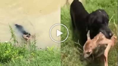 જેમ કે આપણે બધા જાણીએ છીએ કે કૂતરાની ગણતરી વિશ્વના સૌથી બુદ્ધિશાળી પ્રાણીઓમાં થાય છે. આ પ્રાણી જેટલું બુદ્ધિશાળી છે, તેટલું વફાદાર છે. માલિક એક ઈશારા પર પોતાનો જીવ જોખમમાં નાખવા તૈયાર છે, પરંતુ આ દિવસોમાં જે વીડિયો સામે આવ્યો છે તે થોડો અલગ છે. કારણ કે અહીં એક બહાદુર કૂતરાએ નદીમાં ડૂબતા હરણનો જીવ બચાવ્યો હતો. આ દરમિયાન, કૂતરાએ હરણને મોંમાં એવી રીતે પકડી લીધું હતું જેવી રીતે તે તેના બાળકોને મોંથી પકડીને ઉપાડે છે.