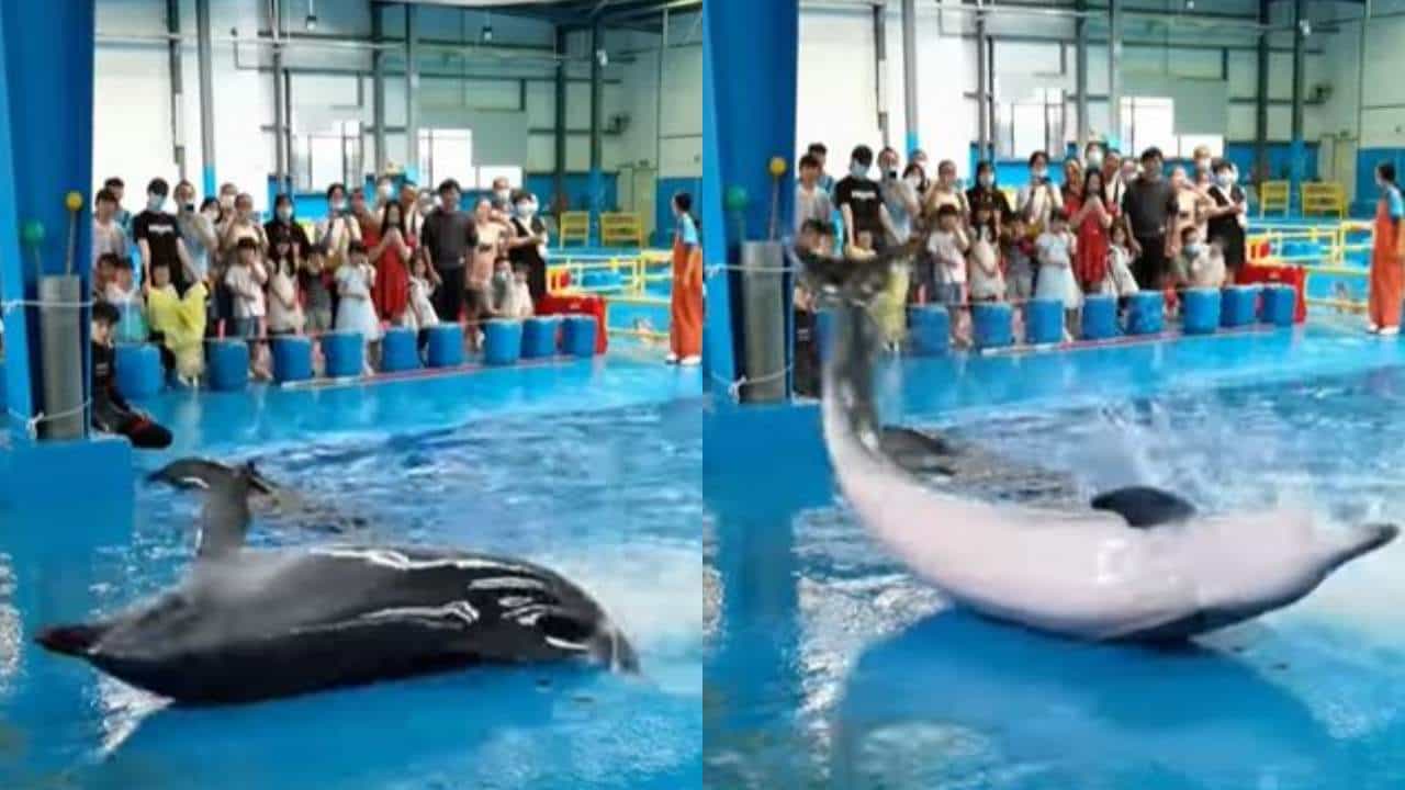 ખરેખર, વીડિયોમાં એક ડોલ્ફિન શાનદાર ડાન્સ કરતી જોવા મળી રહી છે. તેના આ ડાન્સને જોવા માટે લોકોની ભીડ પણ ઉમટી પડી છે. વીડિયોમાં તમે જોઈ શકો છો કે કેવી રીતે ડોલ્ફિન તેની પૂંછડીની મદદથી ગોળ ગોળ ફરીને ડાન્સ કરી રહી છે. તે ઘણી વખત ગોળ-ગોળ ફરે છે અને પછી ધીમે ધીમે પાણીમાં જાય છે. આ સાથે જ લોકો ડોલ્ફિનના આ અનોખા ડાન્સનો વીડિયો પોતાના મોબાઈલમાં કેદ કરી રહ્યા છે. જો કે આ એકમાત્ર વીડિયો નથી જેમાં ડોલ્ફિન આ રીતે ડાન્સ કરી રહી છે, પરંતુ આ પ્રાણી સાથે જોડાયેલા ઘણા ડાન્સ વીડિયો સોશિયલ મીડિયા પર વારંવાર વાયરલ થતા હોય છે, જેને જોઈને લોકો દંગ રહી જાય છે.