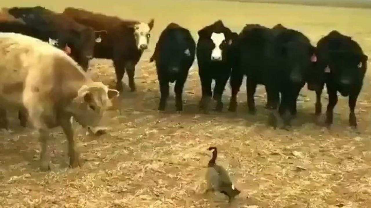 વાયરલ થયેલા વીડિયોમાં તમે જોઈ શકો છો કે એક બતક એકલી સાંઢના ઝૂંડ સાથે લડે છે. સાંઢ અને ગાયોએ બતકને ચારે બાજુથી ઘેરી લીધું છે અને તેમાંથી એક કે બે, બતકને મારવાનો પ્રયાસ પણ કરે છે. પણ આ બતકની હિંમતને બિરદાવવી પડે. સાંઢ કરતાં અનેક ગણું નાનું હોવા છતાં બતક ટસથી મસ નથી થતું અને ત્યાં જ રહે છે. આ પછી, તેણી તેની ચાંચ વડે સાંઢ પર હુમલો કરે છે. આ જોઈને સાંઢ ખૂબ જ પરેશાન થઈ જાય છે અને બતકની સામે આવતાં ડરવા લાગે છે. બતકનો ઉત્સાહ જોઈને તમે ચોક્કસ ચોંકી જશો. તો ચાલો પહેલા આ વીડિયો જોઈએ.