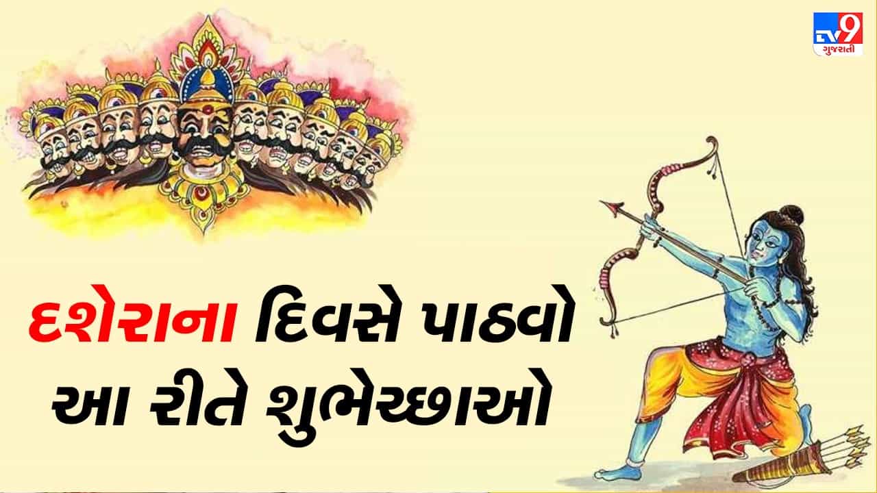 Dussehra Wishes : બે વર્ષના લાંબા સમય બાદ લોકો આજે એટલે કે 5 ઓક્ટોબરે ધામધૂમથી દશેરા (Dussehra) ઉજવશે. આ દિવસે ભગવાન શ્રીરામે રાવણનો વધ કર્યો હતો, તેમજ મા ભગવતીએ 9 રાત અને 10 દિવસ સુધી યુદ્ધ કર્યું હતું અને મહિષાસુરને માર્યો હતો. આ જીતના આનંદમાં તમે તમારા પરિવારના સભ્યો, નજીકના લોકોને તેમજ પ્રિયજનોને શુભેચ્છાઓ આપવા માટે નીચે આપેલા સંદેશાનો ઉપયોગ કરી શકો છો.