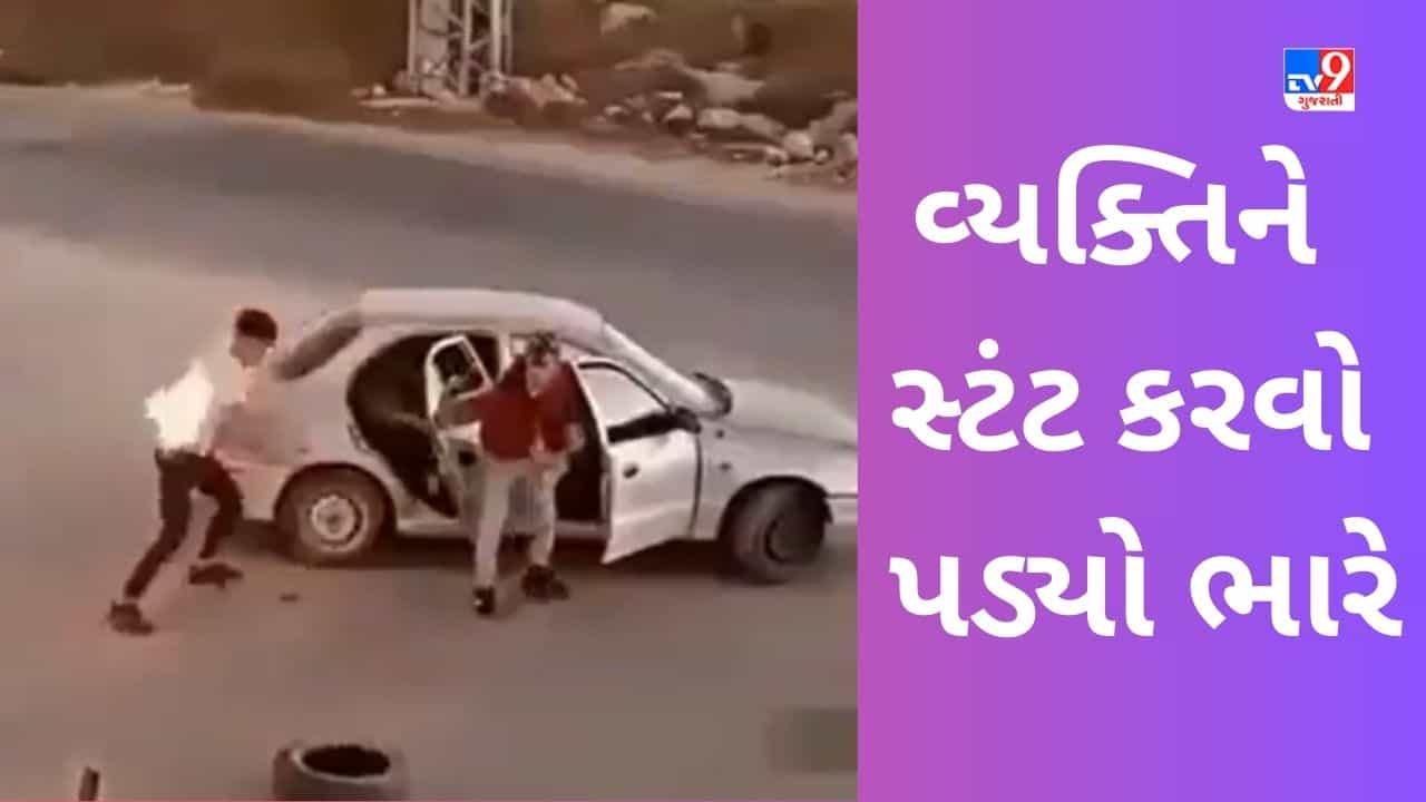 ઘણીવાર તમે જોયું હશે કે જ્યારે લોકોના હાથમાં ફટાકડા આવે છે, ત્યારે તેઓ તેમની સાથે ફટાકડા સાથે મસ્તી કરવા લાગે છે, પરંતુ તેમને ઘણી વાર આવી મસ્તી કરવી ભારે પડે છે. અમુક વાર ફટાકડો આપણા પર જ બેક ફાયર થાય છે. તાજેતરમાં આવો જ એક વીડિયો સામે આવ્યો છે. જેમાં એક યુવક કારમાં નીચે ઉતરીને ફટાકડા દ્વારા ટાયર સળગાવવાનો પ્રયાસ કરતો જોવા મળે છે પરંતુ તેને તેની મજાની સજા થોડીક સેકન્ડમાં જ મળી જાય છે અને તેની સાથે કંઈક એવું બને છે કે હવે તે ફટાકડાને અડતા પહેલા સો વખત વિચારશે.