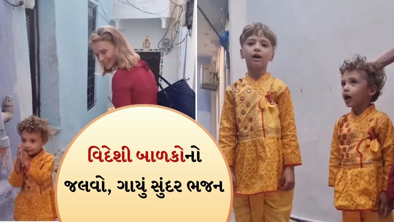 ભારતમાં ઘણા વિદેશીઓ છે જેઓ અહીં પોતાના પરિવાર સાથે રહે છે અને પોતાના બાળકોને અંગ્રેજી તેમજ હિન્દી શીખવી રહ્યા છે. માત્ર બોલવાનું જ નહીં પરંતુ બાળકોને હિન્દી ગીતો પણ શીખવી રહ્યા છે. આજકાલ આવા બે બાળકોનો વીડિયો સોશિયલ મીડિયા પર ધૂમ મચાવી રહ્યો છે, જેમાં તેઓ રામ ભજન ગાતા જોવા મળી રહ્યા છે. વિદેશી બાળકોના આ વીડિયોએ ભારતીય લોકોના દિલ જીતી લીધા છે. આ વીડિયો રાજસ્થાનના ઐતિહાસિક બુંદી શહેરનો છે, જે હવેલીઓ અને કિલ્લાઓ માટે પ્રખ્યાત છે.