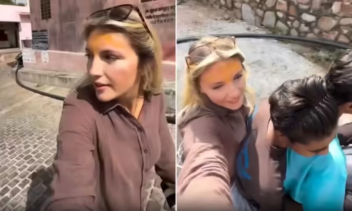 ભારતમાં એકલી હોવા છતા મહિલા 2 યુવકોની બાઈક પર બેસવાનું રિસ્ક લે છે. ગલતા ઘાટી, જયપુરમાં સ્થિત ભગવાન સૂર્ય નારાયણના પ્રાચીન મંદિરે પહોંચી વિદેશી મહિલા મંદિરે દર્શન રે છે અને બહાર નીકળી ત્યાં ફરી રહેલી અન્ય મહિલાઓ સાથે વાત કરે છે અને તેમા જ તેની 40 સેકન્ડ પસાર થઈ જાય છે.