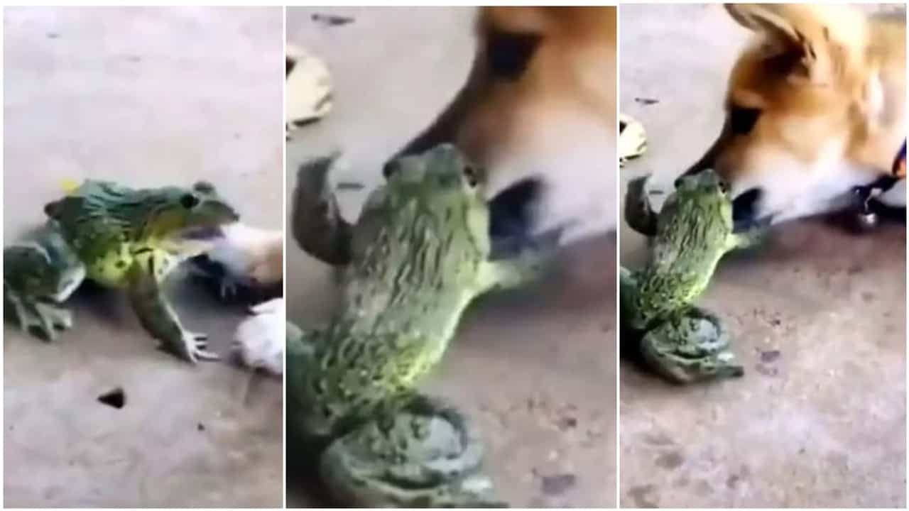 વાયરલ થઈ રહેલા વીડિયોમાં તમે જોઈ શકો છો કે કૂતરો દેડકા સાથે મસ્તી કરી રહ્યો છે, જેના પર દેડકો ડર્યા વગર તેનો સામનો કરે છે અને કૂતરા પર બહાદુરીથી હુમલો કરે છે. તે કૂદીને કૂતરા પર હુમલો કરતો જોવા મળે છે. એટલું જ નહીં દેડકો કૂતરાને મોંથી પકડીને બહાદુરીથી લડે છે. ચોક્કસ દેડકાની આ બહાદુરીએ લોકોને આશ્ચર્યચકિત કર્યા છે.