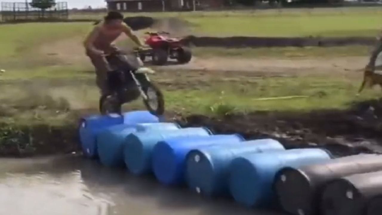 વીડિયોમાં તમે જોઈ શકો છો કે એક વ્યક્તિ એક હાથથી તેજ ગતિએ બાઇક ચલાવી રહ્યો છે અને બીજા હાથથી ડ્રિંક પીને આગળ વધી રહ્યો છે. પછી ચાલતી વખતે પીણું પીધા પછી તે પોતાનું કેન ફેંકી દે છે અને સ્ટંટ બતાવવાનો પ્રયાસ કરે છે. તે બાઇક દ્વારા એક નાની કેનાલને પાર કરે છે, પરંતુ તેની સામે આવતાની સાથે જ તે બાઇક ઉછળવાને કારણે તેનું સંતુલન જાળવી શક્યો ન હતો અને બાઇક પરથી કૂદીને થોડે દૂર પડી ગયો હતો, પરંતુ તે પડતાની સાથે જ તે એકદમ સ્વેગમાં ઊભો થાય છે અને જાણે તેને કંઈ થયું જ નથી તેવું ડોળ કરે છે. હવે આ દ્રશ્ય જોઈને હસવાનું મન ન થાય તો બીજું શું થાય.
