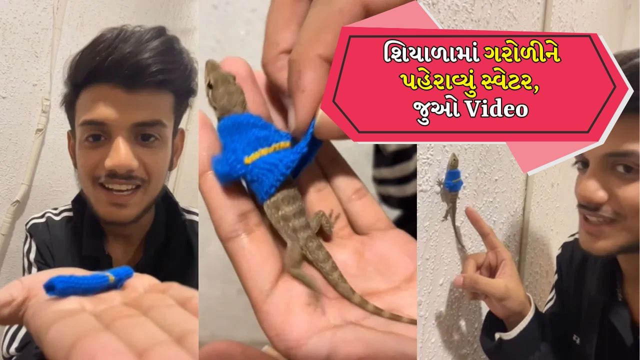 Funny Video: લો બોલો! છોકરાએ ગરોળીને પહેરાવ્યું સ્વેટર, શું તમે ક્યારેય આવું જોયું છે?