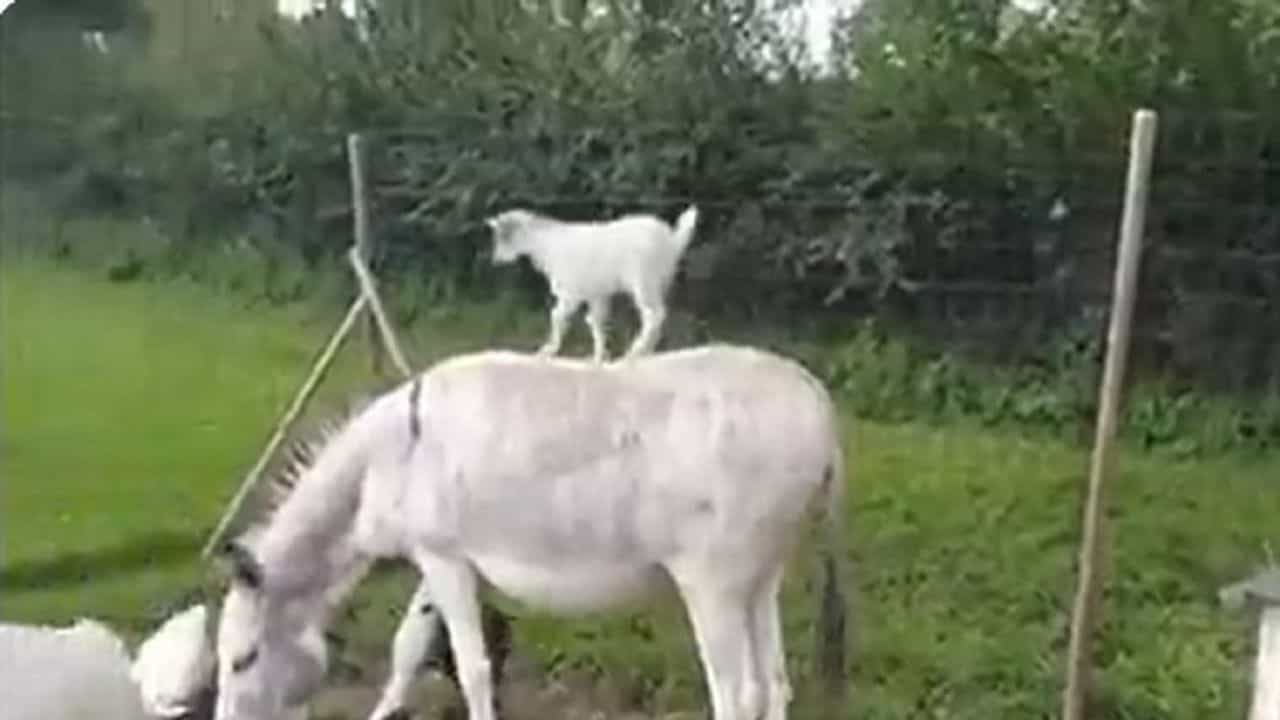 આ વીડિયોમાં એક નાનકડી બકરીને મસ્તી સુઝે છે અને તે કૂદીને ગધેડાની (Donkey) પીઠ પર ચડી જાય છે. તેને જોઈને એવુ લાગી રહ્યુ છે કે તે ગધેડાની પીઠ પર ઊભા રહીને કોઈ પરાક્રમ કરશે. વીડિયોમાં તમે જોઈ શકો છો કે એક ગધેડો ઘાસ ચરી રહ્યો છે અને તેની સાથે ઘણા બતક પણ જોવા મળી રહ્યા છે, આ દરમિયાન પાછળથી બકરી કુદીને ગધેડાની પીઠ પર ચડી જાય છે.આ અતરંગી બકરીની મસ્તી યુઝર્સને ખુબ પસંદ આવી રહી છે.