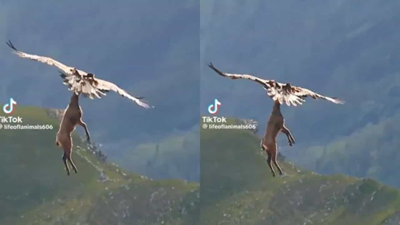 ગોલ્ડન ઇગલ્સ ઘણીવાર પર્વતોમાં જોવા મળે છે અને અત્યંત શક્તિશાળી હોય છે. તેઓ તેમના શિકારને દૂરથી અનુભવે છે અને ક્ષણભરમાં તેને મારી નાખે છે. વાયરલ થઈ રહેલા વીડિયોમાં તમે જોશો કે ગોલ્ડન ઈગલે હરણને પકડી લીધું છે અને આકાશમાં હરણ દેખાઈ રહ્યું છે. વીડિયોમાં ચારેબાજુ માત્ર પર્વતો જ દેખાય છે.