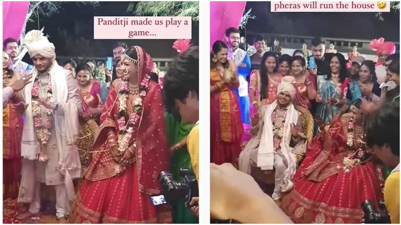 દરેક વ્યક્તિ જાણે છે તેમ, ભારતીય લગ્નો ખૂબ વિધિવત હોય છે. જેમાં વિવિધ રીત-રિવાજો અને વિધિઓ પૂર્ણ કરવામાં કલાકો લાગે છે. આવી સ્થિતિમાં, ત્યાં હાજર સ્વજનોને કંટાળો ન આવે, તેથી ઘણા યુગલો કંઈક એવું કરે છે, જે જોઈને લગ્ન જીવનમાં રોનક આવે છે. તાજેતરના દિવસોમાં, કંઈક આવું જ જોવા મળ્યું હતું જ્યાં વર-કન્યા તેમના પંડિતના કહેવા પર લગ્નની (funny wedding video) વિધિ દરમિયાન મજેદાર રમત રમી રહ્યા છે.