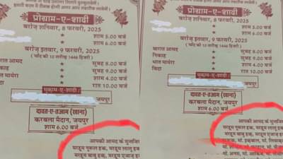 આ લગ્નના કાર્ડમાં દર્શનાભિલાષીના સ્થાને મૃતકોના નામ લખ્યા છે. કાર્ડમાં લખ્યું છે. મરહુમ નુરુલ હક, મરહુમ લાલુ હક, મરહુમ બાબુ હક, મરહુમ એજાજ હક, ત્યારબાદ અન્ય લોકોના નામ લખ્યા છે. લગ્ન જયપુરના કરબલા મેદાનમાં છે. કાર્ડમાં 8 ફેબ્રુઆરી અને 9 ફેબ્રુઆરીના રોજ કાર્યક્રમ વિશે લખ્યું છે.આ કાર્ડ વાયરલ થઈ રહ્યું છે. 600થી વધુ લોકોએ લાઈક કરી છે. જ્યારે 100થી વધુ લોકોએ કોમેન્ટ કરી છે. એક વ્યક્તિએ લખ્યું જોધપુર-જયપુર વાળામાં આવા કાર્ડ સામાન્ય છે.