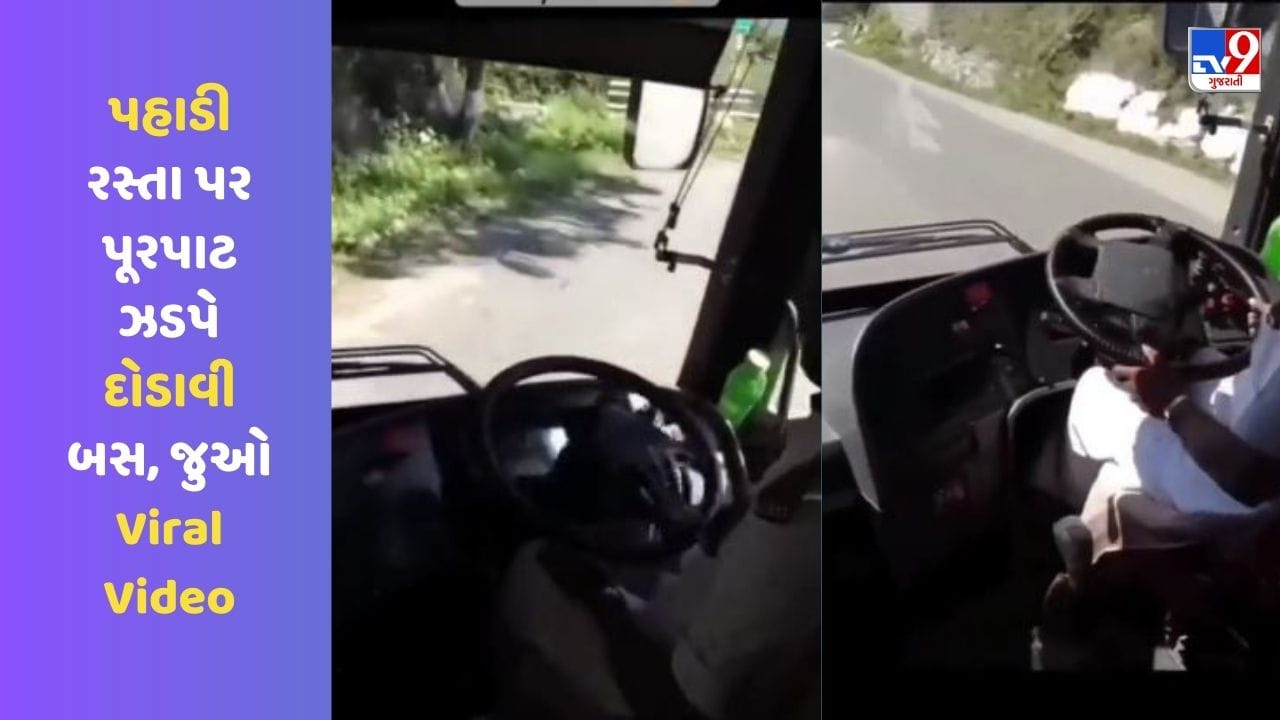 અસલી હેવી ડ્રાઈવર! પહાડી રસ્તા પર પૂરપાટ ઝડપે દોડાવી બસ, જુઓ Viral Video
