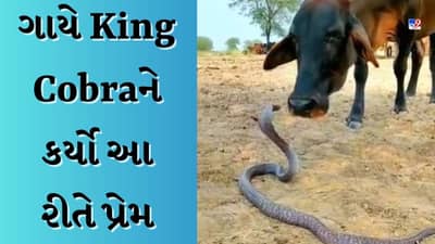 સોશિયલ મીડિયા પર એવો એક વીડિયો સામે આવ્યો છે, જેને જોઈને લોકોને પોતાની આંખો પર વિશ્વાસ કરવો મુશ્કેલ થઈ રહ્યો છે. વાસ્તવમાં વીડિયોમાં એક ખતરનાક કિંગ કોબ્રા ગાયના રસ્તામાં આવે છે. આ પછી જે પણ થશે, તે જોઈને તમે પણ ચોંકી જશો. ગાય કોબ્રાને જોઈને ગભરાતી નથી, પરંતુ તેના પર પોતાનો પ્રેમ વરસાવવા લાગે છે. હવે જેણે પણ આ દ્રશ્ય જોયું તે દંગ રહી ગયા છે.