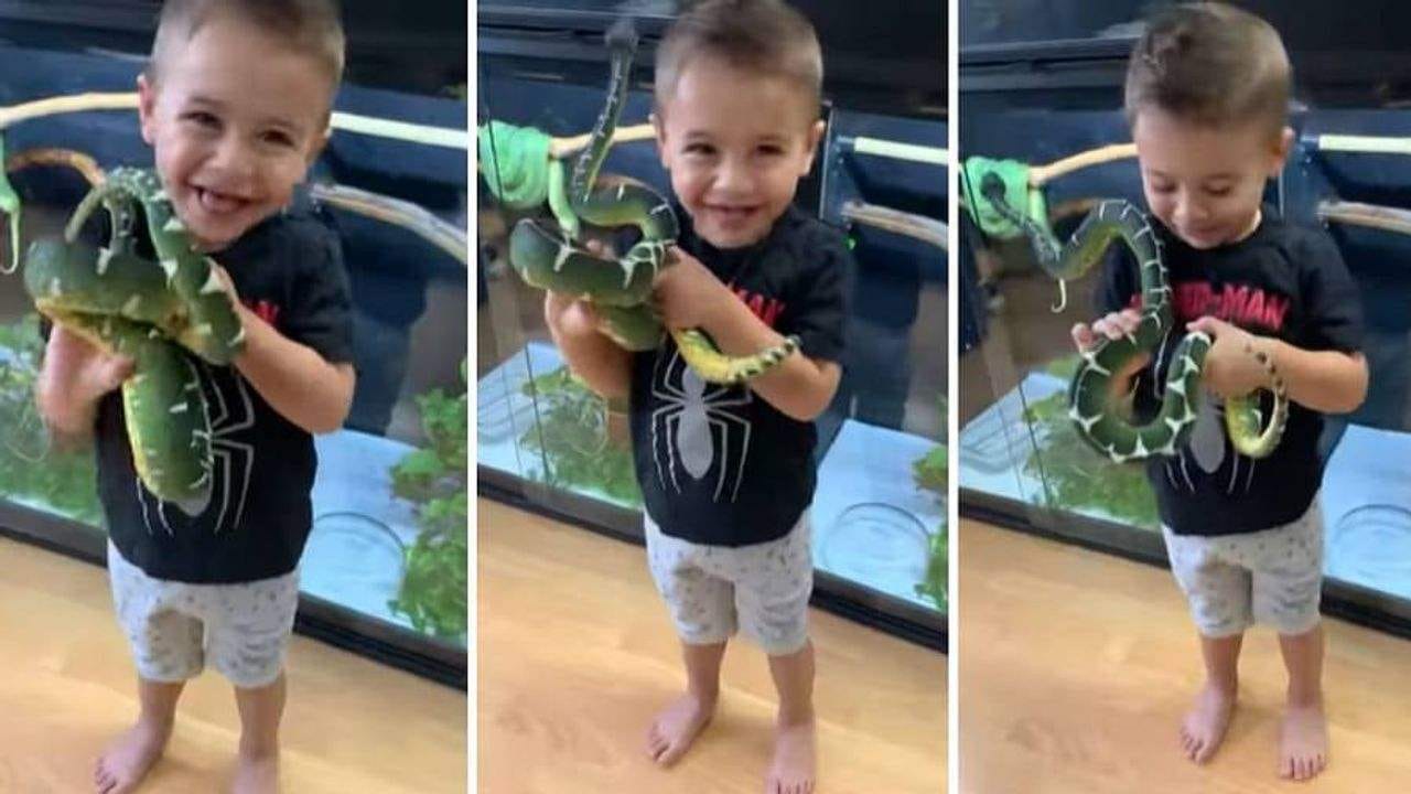 બાળક રમકડાની જેમ સાપ સાથે કરી રહ્યો છે મસ્તી !