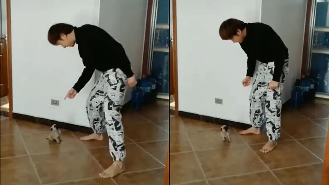 Viral Video : ઈન્ટરનેટ પર અવારનવાર ડાન્સ વીડિયો વાયરલ થતા જોવા મળે છે. જેમાં કેટલીર વાર ડાન્સરના ડાન્સ મુવ્સ જોઈને લોકોને આશ્વર્ય થતુ હોય છે, જ્યારે કેટલાક ફની મુવ્સને (Dance Moves) કારણે યુઝર્સ હસીને લોટ પોટ થઈ જાય છે. પરંતુ તાજેતરમાં વાયરલ થઈ રહેલો આ વીડિયો થોડો અલગ છે. જેમાં એક યુવાન સાથે ગલુડિયુ જાણે ડાન્સ બેટલ (Dance Battle) કરતુ હોય તેવુ લાગી રહ્યુ છે. આ ક્યુટ વીડિયો જોઈને તમારો દિવસ બની જશે.