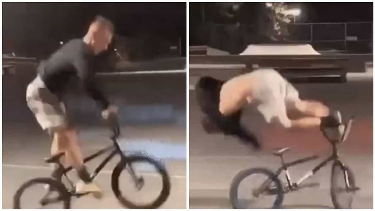 વીડિયોમાં તમે જોઈ શકો છો કે એક યુવક બાળકોની સાઈકલ ચલાવી રહ્યો છે અને તેના પર સ્ટંટ કરતો જોવા મળી રહ્યો છે. પરંતુ બાદમાં તેનું સંતુલન બગડે છે અને તે સાઇકલ સાથે જમીન પર પડી જાય છે. જો કે સદનસીબે રસ્તા પર કોઈ વાહન ન આવતા તેને કોઈ ઈજા થઈ નહોતી.