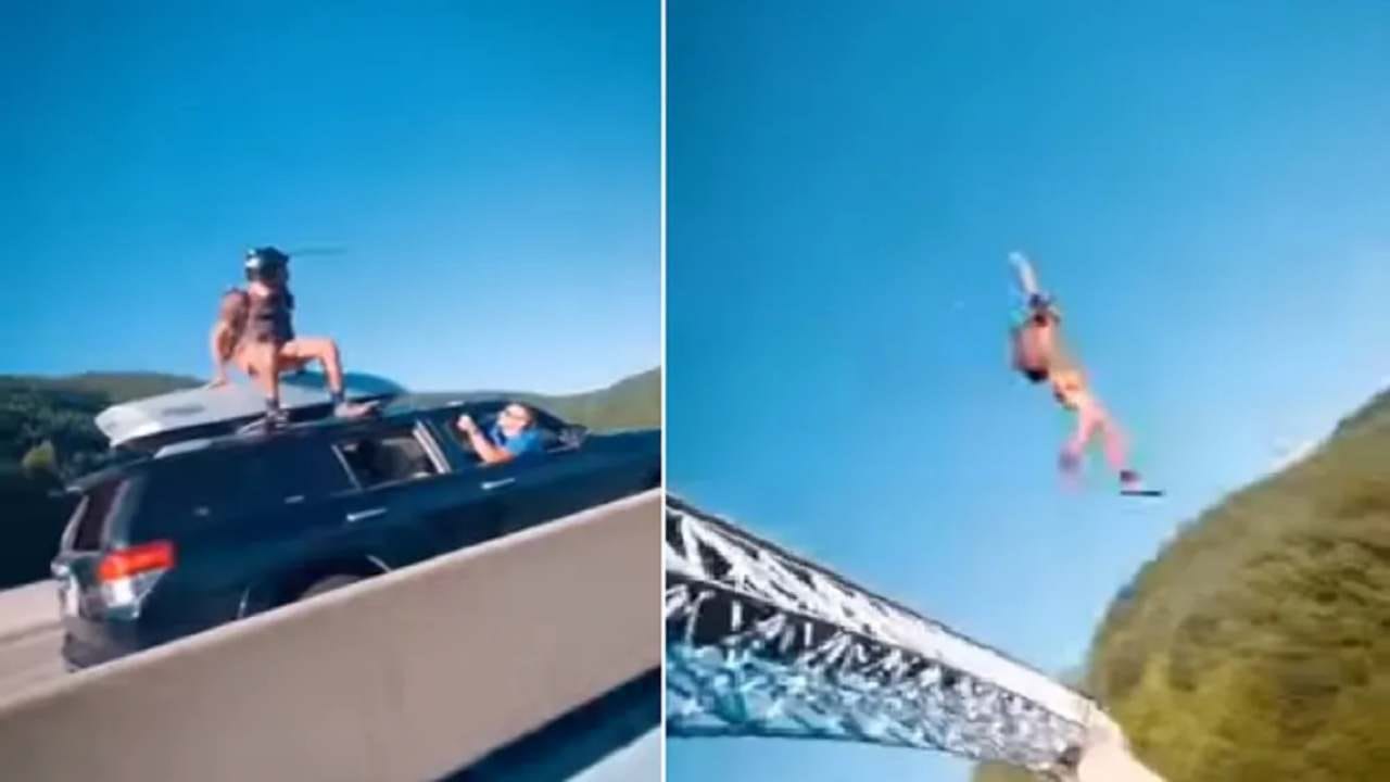 Video: પુલ પર ચાલતી ગાડીમાંથી નીચે કુદ્યો શખ્સ, ખતરનાક સ્ટંટ અને હિમ્મત જોઈ લોકો દંગ રહી ગયા