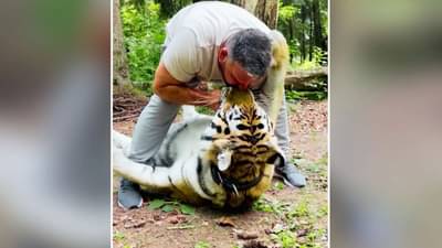 આ વાયરલ વીડિયોમાં, એક પુરુષને જમીન પર ઊંધા પડેલા ખુંખાર વાઘની નજીક જતાં અને તેના ગળાને પકડીને ઉઠાવતાં જોઈ શકાય છે. વધુમાં, તે વ્યક્તિ વાઘના હોઠ પર વારંવાર ચુંબન કરે છે અને કોઈ ડર વગર તેની સાથે સમય વિતાવે છે. આશ્ચર્યજનક રીતે, વાઘ પણ કોઈ પ્રતિક્રિયા આપતો નથી; તે શાંત રહે છે અને જાણે આ ક્ષણનો આનંદ લઈ રહ્યો હોય.