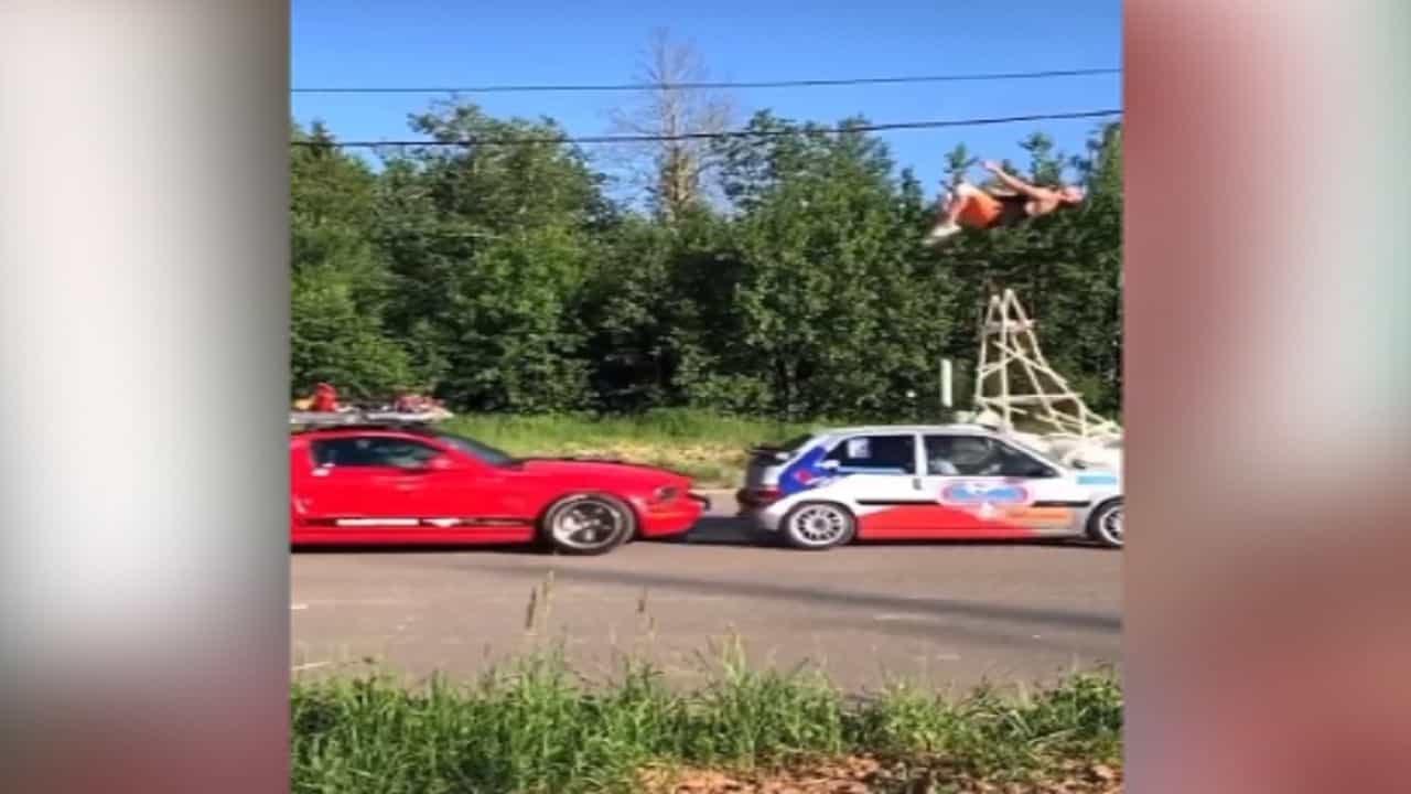 આ વીડિયોમાં એક વ્યક્તિ હવામાં સ્ટંટ બતાવવાનો પ્રયાસ કરી રહ્યો છે, જ્યારે તેની નીચેથી કાર તેજ ગતિથી પસાર થતી જોવા મળી રહી છે. જો કે, તે ખૂબ જ સુરક્ષિત રીતે જમીન પડે છે અને તે સમયે તે કરે છે જ્યારે તમામ વાહનો ત્યાંથી પસાર થઈ ગયા હોય. વીડિયોમાં તમે જોઈ શકો છો કે એક માણસ લાકડાની નાની સીડી પર ઊભો છે અને હવામાં કૂદીને બેકફ્લિપ કરવાનો પ્રયાસ કરી રહ્યો છે, જ્યારે એક કાર આવીને તેની સીડીને અથડાવીને આગળ વધે છે. આ રીતે કુલ ચાર કાર તેની નીચેથી પસાર થાય છે, પછી તે માણસ જમીન પર લેન્ડ કરે છે. જો આ સ્ટંટમાં સહેજ પણ ભૂલ થઈ હોત તો વ્યક્તિની હાલત કફોડી થઈ ગઈ હોત.