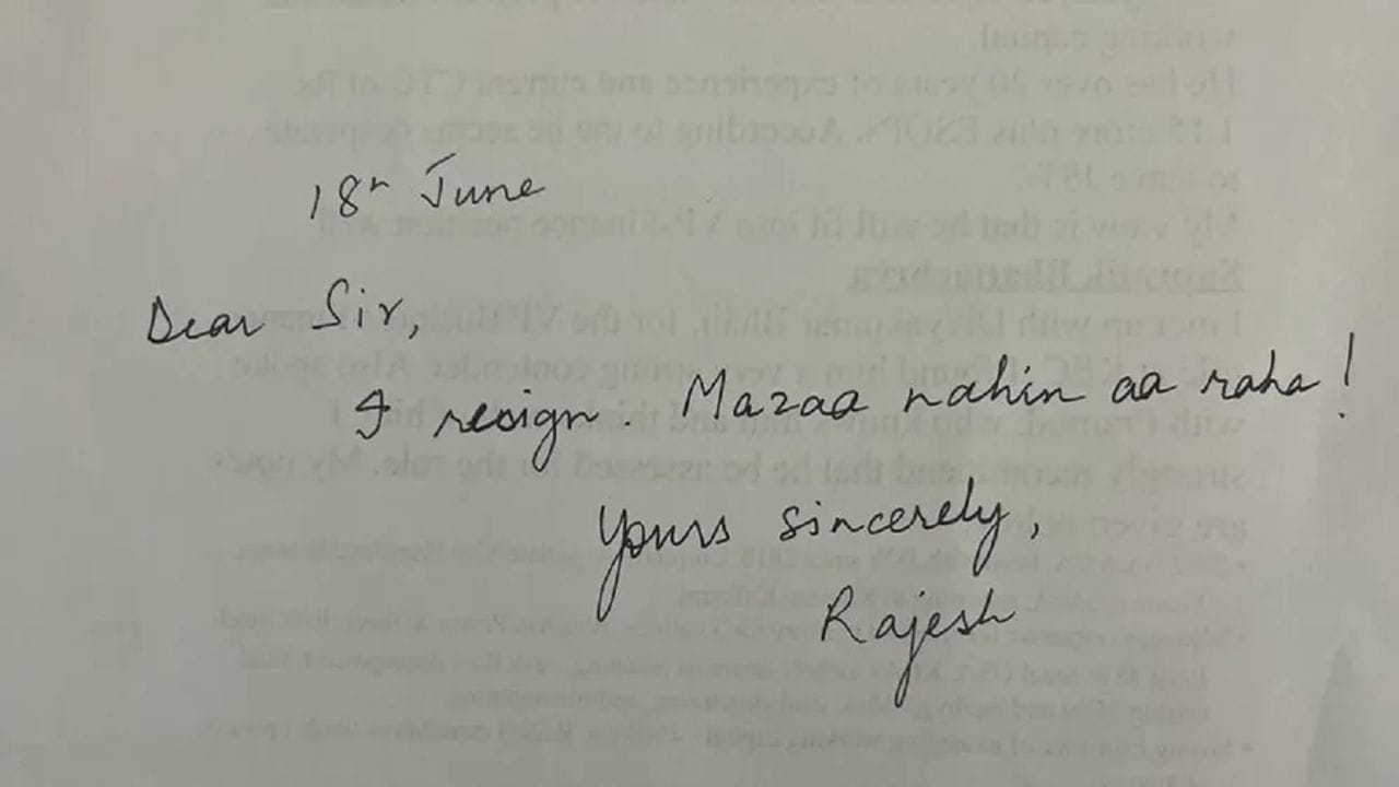 આવો Resignation letter તમે ક્યારે નહીં જોયો હોય, આ વ્યકિતએ પોતાના દિલની વાત લખીને આપ્યુ ‘Resignation’