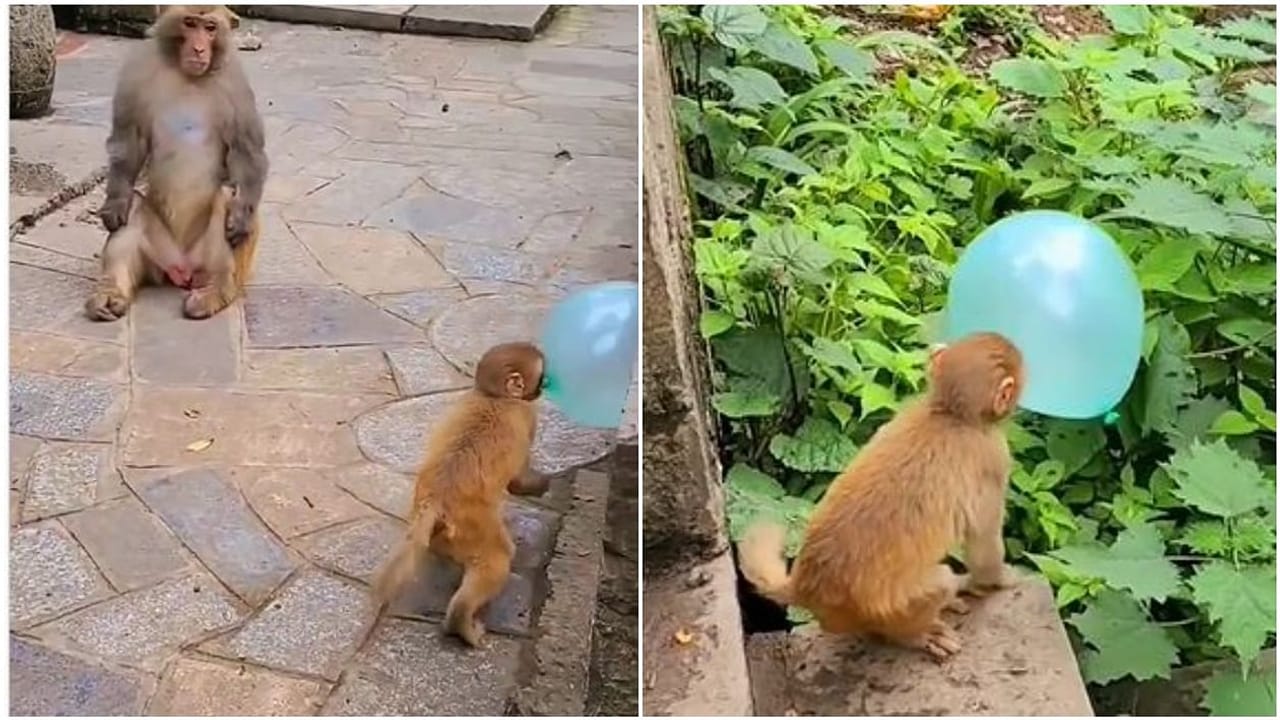 વાંદરાએ ફુગ્ગા સાથે કર્યા જબરા ખેલ પણ અચાનક ફુગ્ગો ફૂટતા થયું કંઈક આવું, જુઓ આ વાયરલ વીડિયો