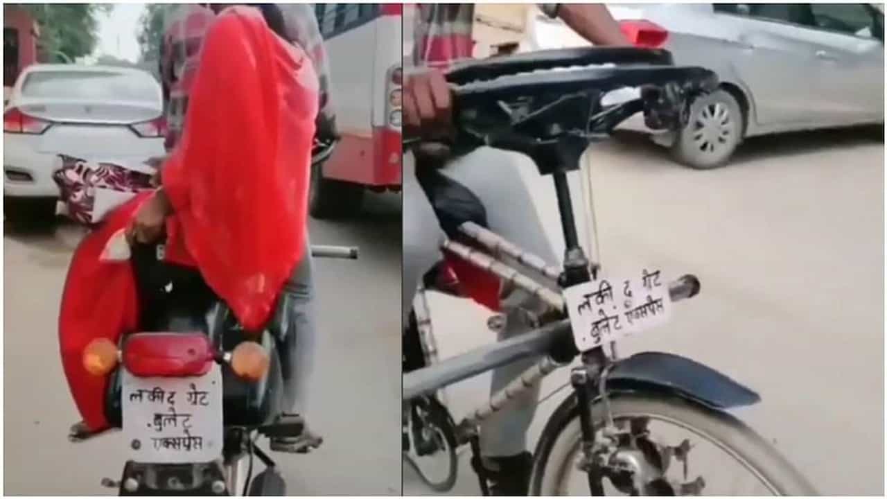 વાયરલ થઈ રહેલા વીડિયોમાં તમે જોઈ શકો છો કે એક વ્યક્તિએ જુગાડ દ્વારા બુલેટનો લુક બદલીને સાઈકલમાં ફેરવી દીધો છે. આ વ્યક્તિએ તેની સાયકલમાં સીટ કવર અને રોયલ એનફિલ્ડ બુલેટનો પાછળનો ભાગ ફીટ કર્યો છે.